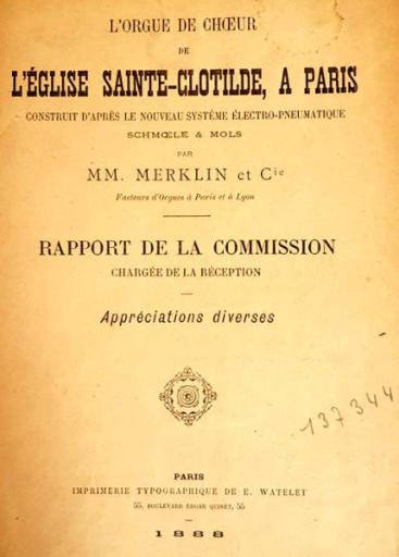 monde musical et clérical. Sa construction fut confiée à la maison Cavaillé-