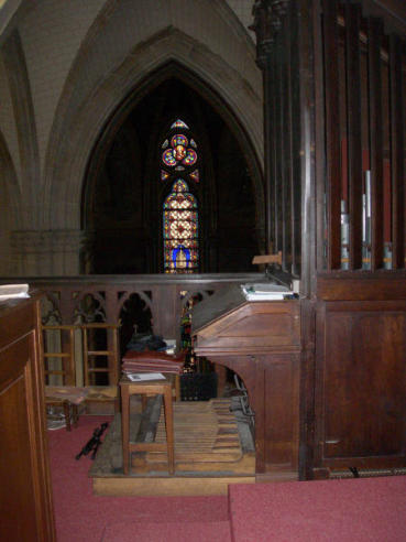 La console était située entre les stalles du chœur (coté Evangile) et l'alimentation
